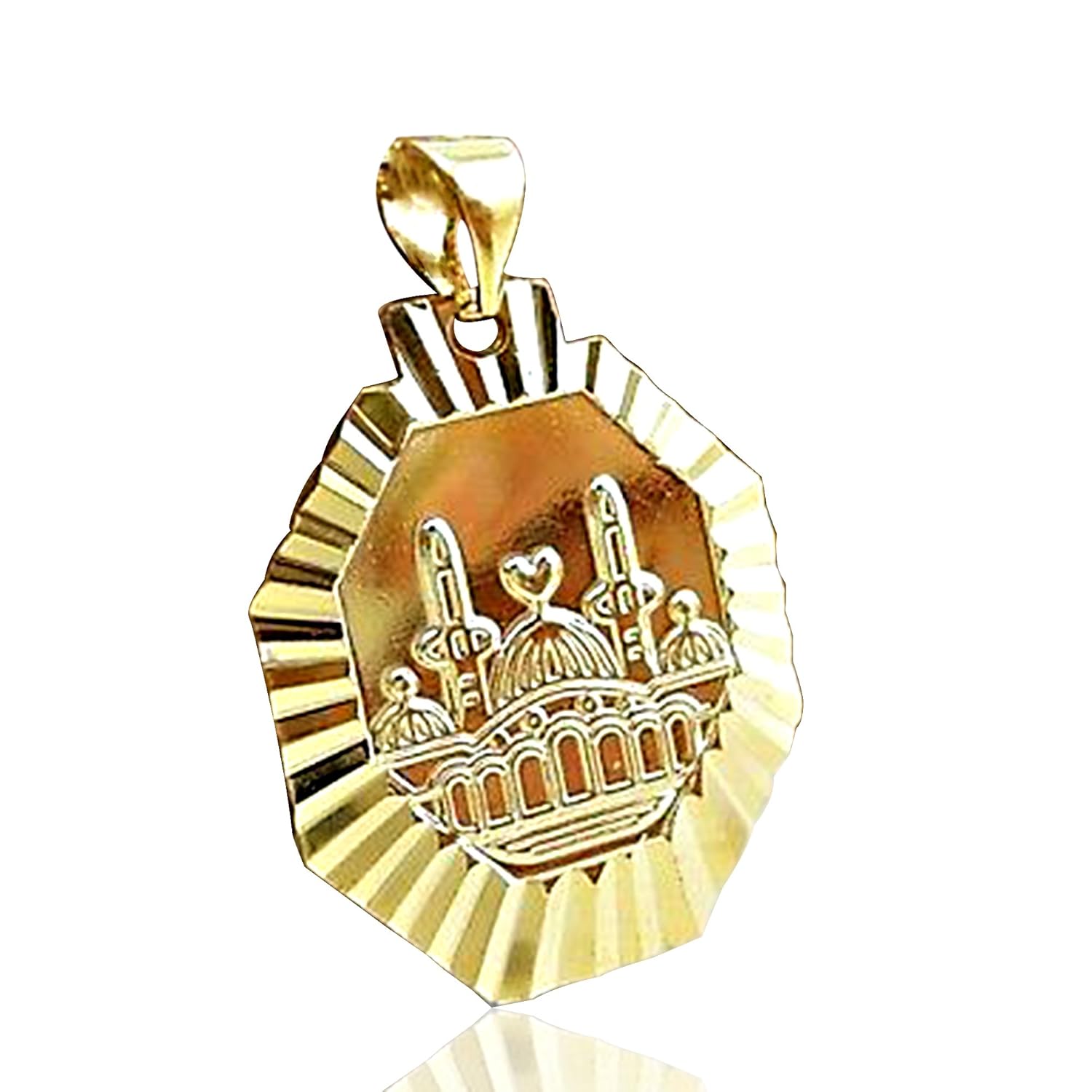 14K Yellow Gold Over .925 Sterling Silver Muslim Mosque Pendant Pendant For Women's